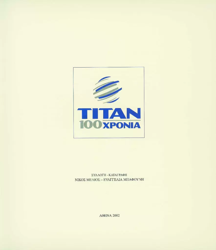 ΤΙΤΑΝ 100 χρόνια / Νίκος Μέλιος, Ευαγγελία Μπαφούνη · επιμέλεια Νίκος Μέλιος, Ευαγγελία Μπαφούνη. – 1η έκδ. – Αθήνα : ΤΙΤΑΝ Α.Ε. – Ινστιτούτο Μελέτης της Τοπικής Ιστορίας και της Ιστορίας των Επιχειρήσεων (Ι.Μ.Τ.Ι.Ι.Ε.), 2002. – 188σ. · 28×24εκ.