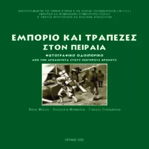 Το λεύκωμα “Εμπόριο και τράπεζες στον Πειραιά: Φωτογραφικό οδοιπορικό από την αρχαιότητα στους νεότερους χρόνους” εκδόθηκε με αφορμή τον εορτασμό των “Ευρωπαϊκών Ημερών Πολιτιστικής Κληρονομιάς 2002” του Υπουργείου Πολιτισμού με θέμα “Από τις ανταλλαγές αγαθών στις ανταλλαγές στο διαδίκτυο”. Στόχος της έκδοσης είναι η ανάδειξη της σημασίας του εμπορίου και των τραπεζικών συναλλαγών στην κοινωνική και οικονομική ανάπτυξη της πόλης του Πειραιά στη μακρά διάρκεια και η ένταξη της στους εμπορικούς δρόμους της Μεσογείου. Μέσα από το σπάνιο φωτογραφικό και αρχειακό υλικό αναδεικνύονται χώροι ανταλλαγών και συναλλαγών, προσωπικότητες, εμπορικοί οίκοι, κτίρια και εμπορικοί άξονες της πόλης. Τα κείμενα που πλαισιώνουν την παρούσα έκδοση καταγράφουν την εξέλιξη των ανταλλαγών και των συναλλαγών στην πόλη του Πειραιά από την αρχαιότητα ως σήμερα.