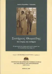 Σωτήριος Θωμαΐδης: Δια πυρός και σιδήρου: Η προσωπική του πορεία μέσα από το αρχείο του και τη μαρτυρία της κόρης του / Ιωάννα Θωμαΐδου – Γαλανάκη. – 1η έκδ. – Πειραιάς: Ινστιτούτο Μελέτης της Τοπικής Ιστορίας και της Ιστορίας των Επιχειρήσεων (Ι.Μ.Τ.Ι.Ι.Ε.), 2007. – 176σ. · 21×14εκ. – (Προφορικές Μαρτυρίες · 2) ISBN 978-960-7975-18-8 (Μαλακό εξώφυλλο) [Κυκλοφορεί]