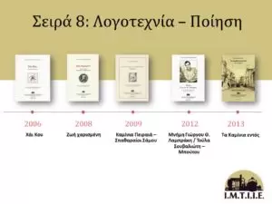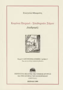Καμίνια Πειραιά – Σπαθαραίοι Σάμου: Διαδρομές / Ευαγγελία Μπαφούνη. – 1η έκδ. – Πειραιάς: Ινστιτούτο Μελέτης της Τοπικής Ιστορίας και της Ιστορίας των Επιχειρήσεων (Ι.Μ.Τ.Ι.Ι.Ε.), 2009. – 62σ. · 17×12εκ. – (Λογοτεχνία – Ποίηση · 3) ISBN 978-960-7975-20-1 (Μαλακό εξώφυλλο) [Κυκλοφορεί]