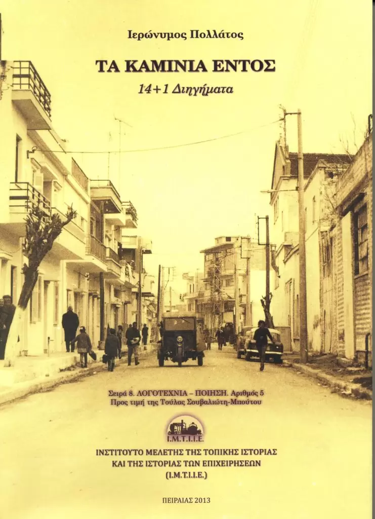 Τα Καμίνια εντός: 14+1 διηγήματα / Ιερώνυμος Πολλάτος. – Πειραιάς: Ινστιτούτο Μελέτης της Τοπικής Ιστορίας και της Ιστορίας των Επιχειρήσεων (Ι.Μ.Τ.Ι.Ι.Ε.), 2013. – 158σ. · 21×15εκ. – (Λογοτεχνία – Ποίηση · 5) ISBN 978-618-80862-1-0 (Μαλακό εξώφυλλο) [Κυκλοφορεί]