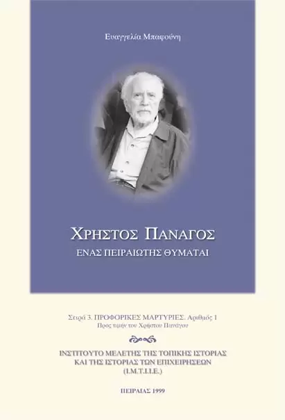 • Παρουσίαση της βιβλίου της Ευαγγελίας Μπαφούνη «Χρήστος Πανάγος: Ένας Πειραιώτης θυμάται» το οποίο εκδόθηκε από το Ι.Μ.Τ.Ι.Ι.Ε. (Πειραϊκός Σύνδεσμος) (11 Δεκεμβρίου 2000)