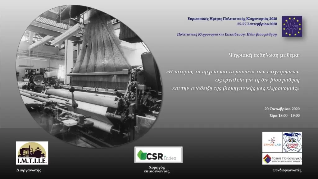 Ψηφιακή Εκδήλωση με θέμα: «Η ιστορία, τα αρχεία και τα μουσεία των επιχειρήσεων ως εργαλεία για τη δια βίου μάθηση και την ανάδειξη της βιομηχανικής μας κληρονομιάς».